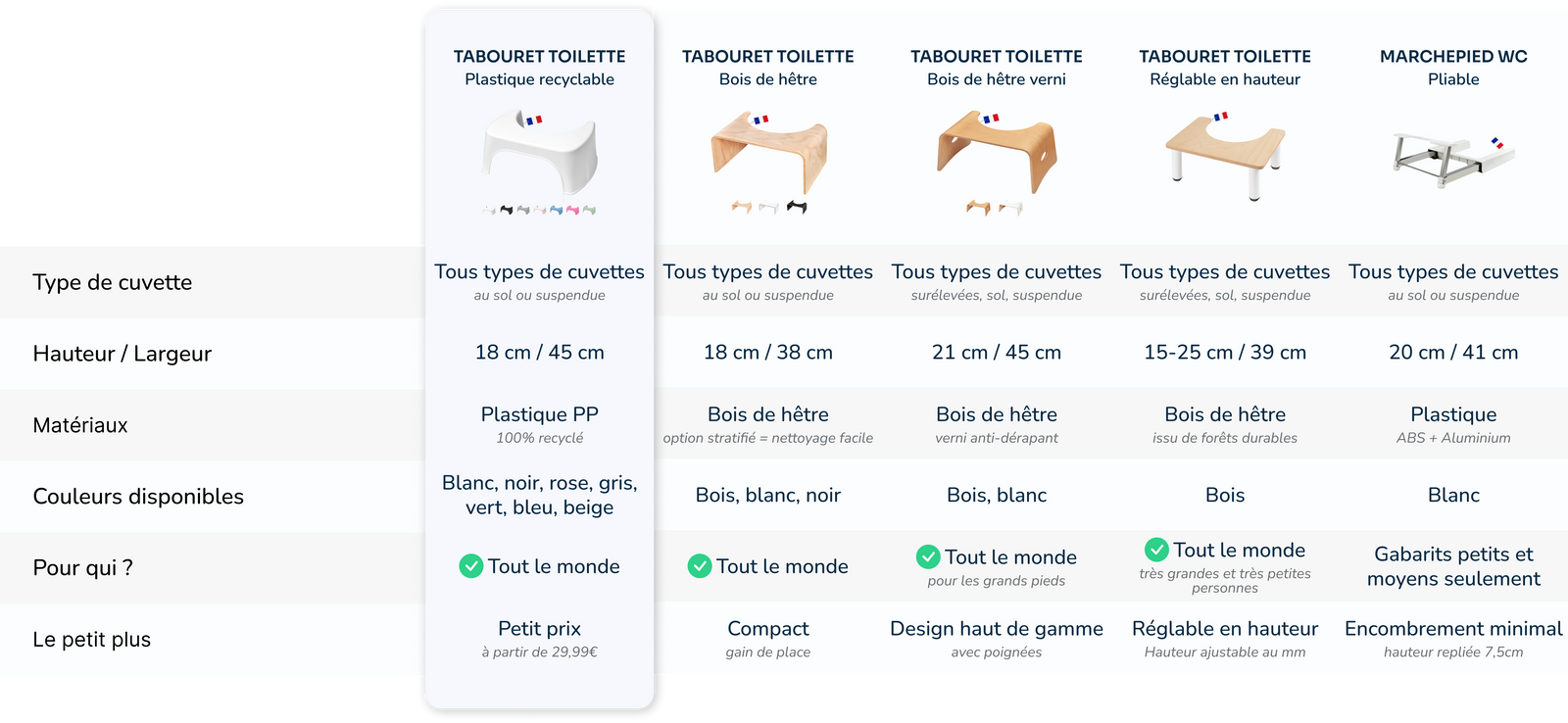 Approuvé et encouragé par les professionnels de la santé, notre tabouret physiologique fait des merveilles pour votre posture. Il vous aide à vous mettre en position accroupie naturelle pour un transit plus doux avec moins de tension. C'est un petit pas pour un grand confort !